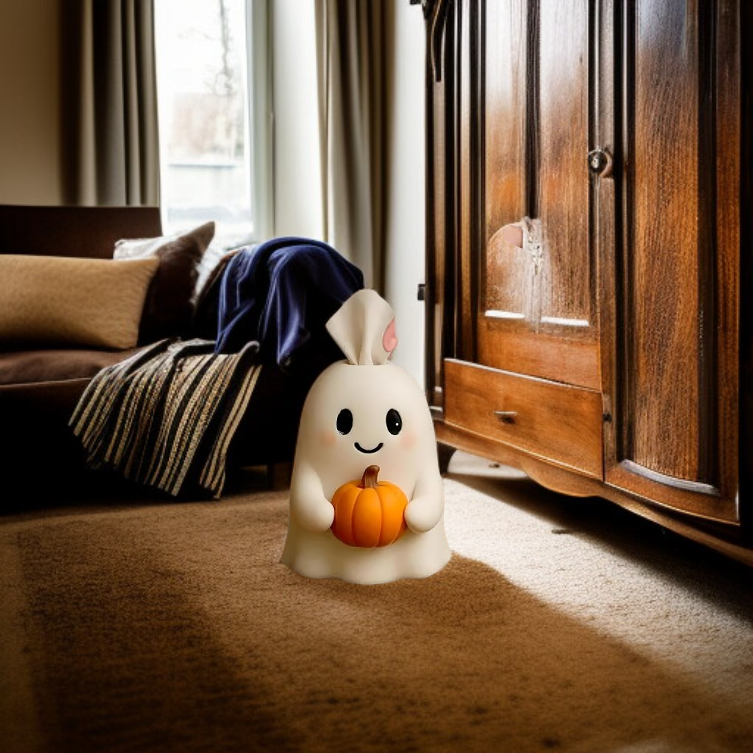 Color: Ghost Holding Pumpkin Tissue Box