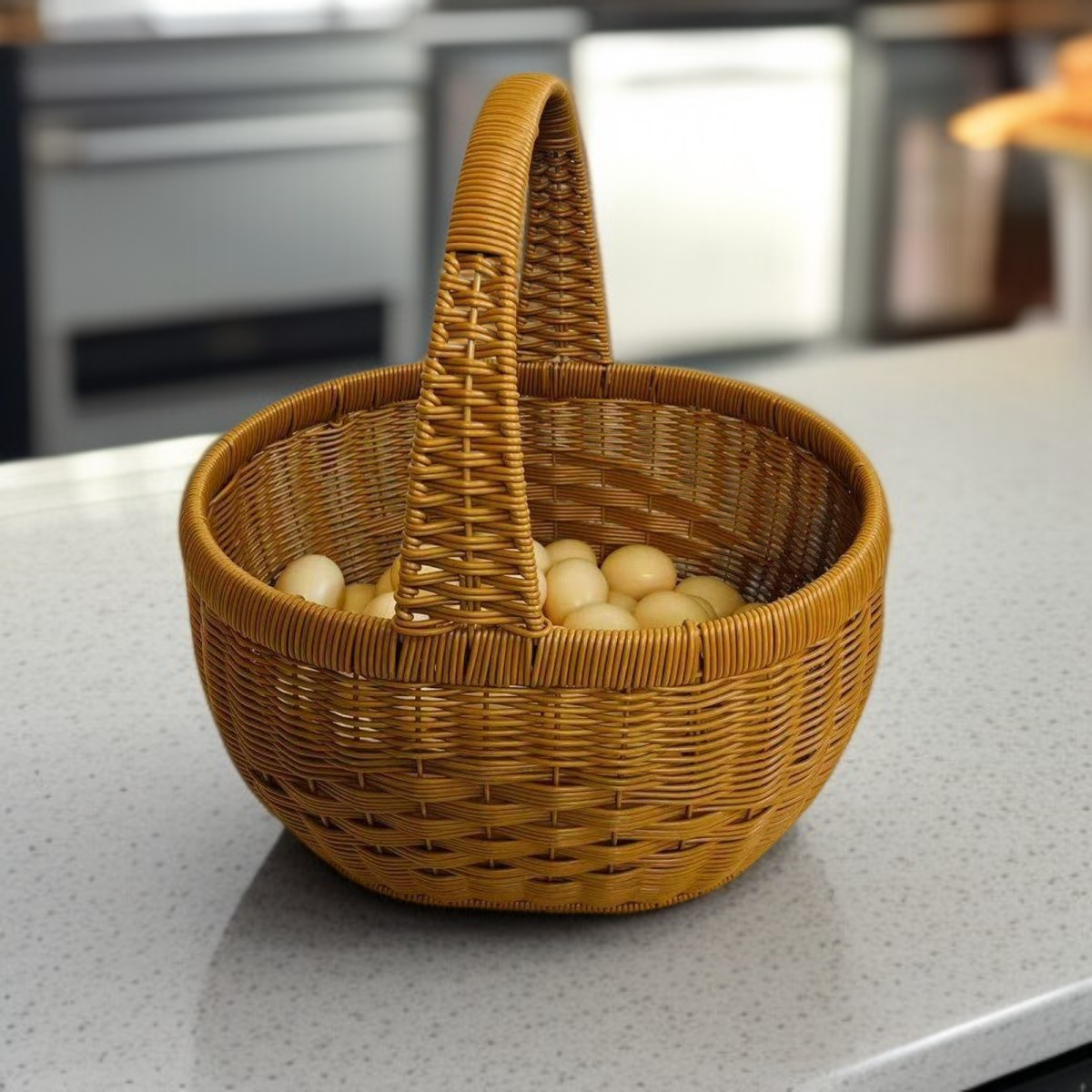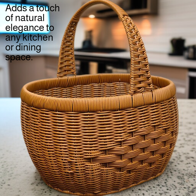 ● Crafted with a woven rattan-style design, this fruit basket brings a touch of natural elegance to any kitchen or dining space, making it both functional and decorative.