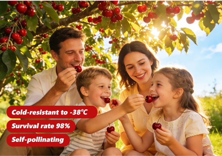 🌱 Yale & USDA Innovation: Discover self-pollinating cherry saplings that produce jumbo, ping pong-sized fruits with no artificial pollination needed.💪 Guaranteed Success: We provide sturdy, two-year-old saplings backed by a full refund or replacement guarantee if they don't grow!